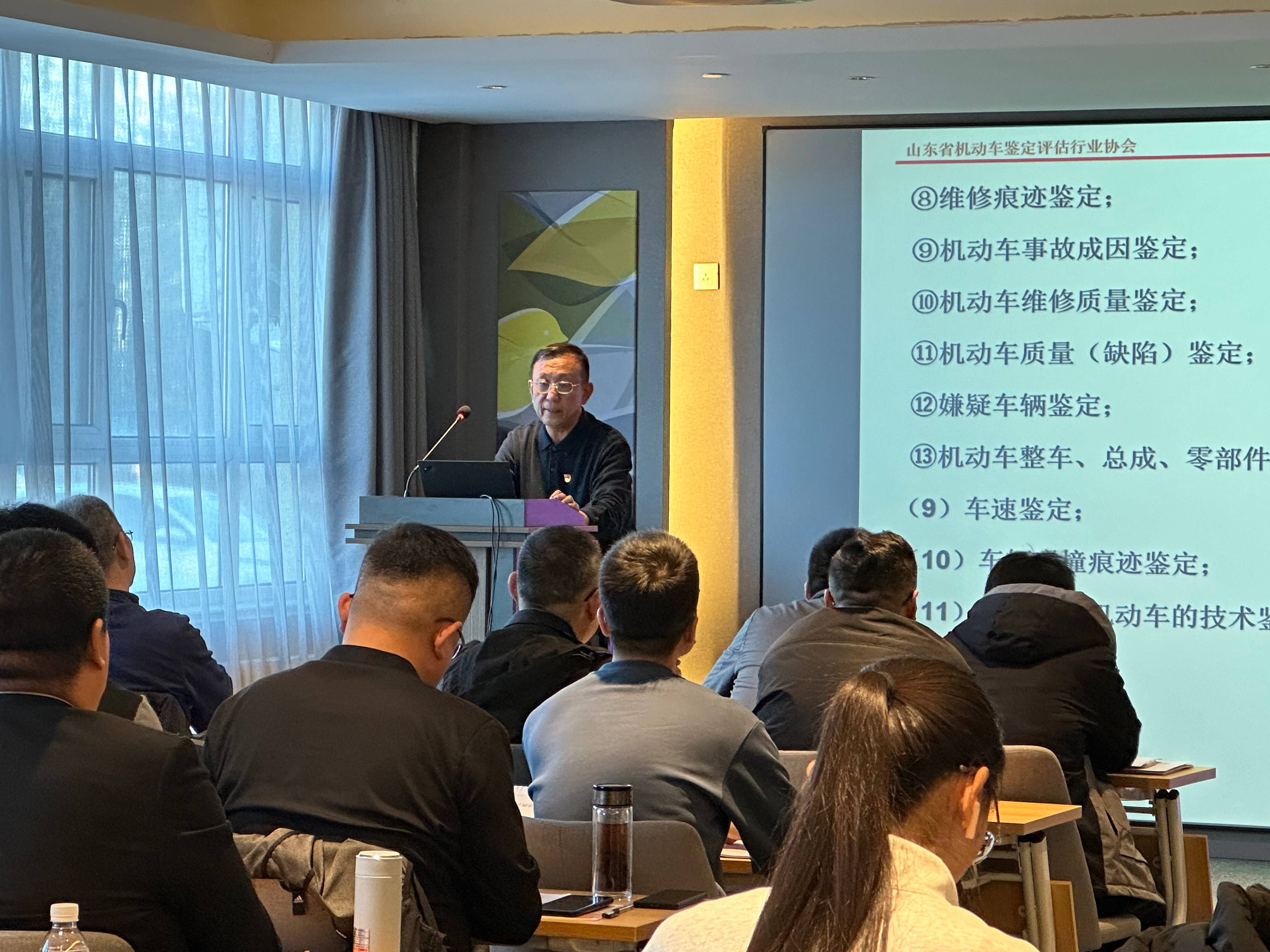 本次会议由业务培训和座谈交流两部分组成。上午,施会长带领大家对《事故车辆损失鉴定评估规范》山东省地方标准进行了学习和深入解读。通过他细致入微的讲解,使参会人员对该标准有了更清晰的认识和理解,为今后的鉴定评估工作提供了明确的规范和指导。