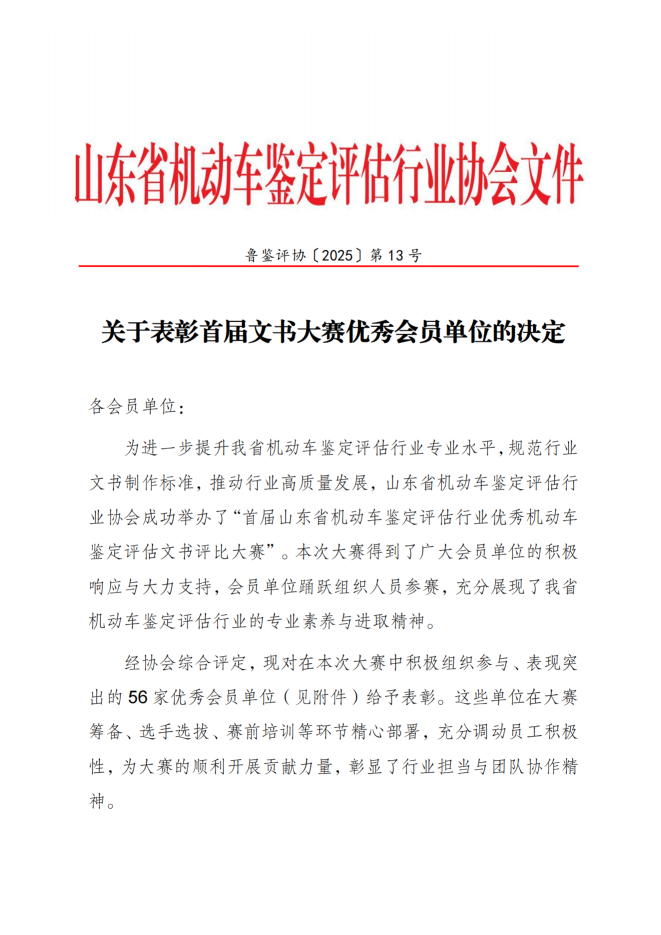 关于表彰首届文书大赛优秀会员单位的决定