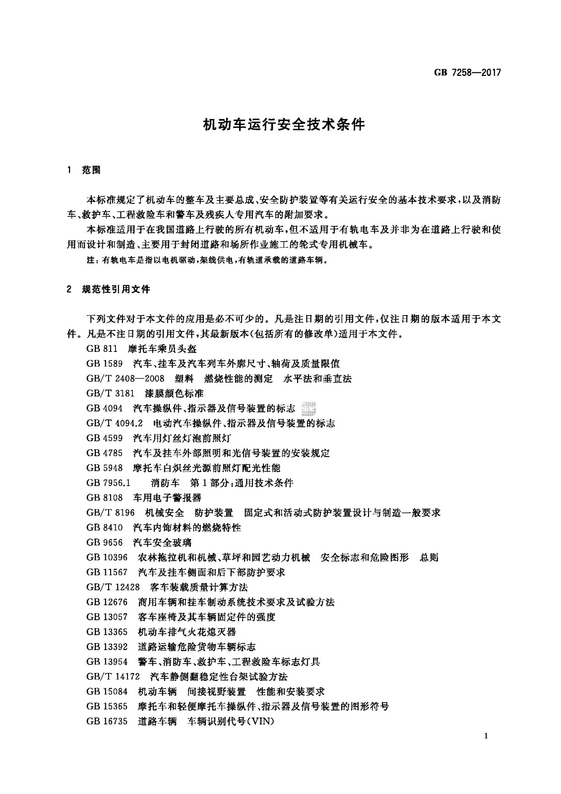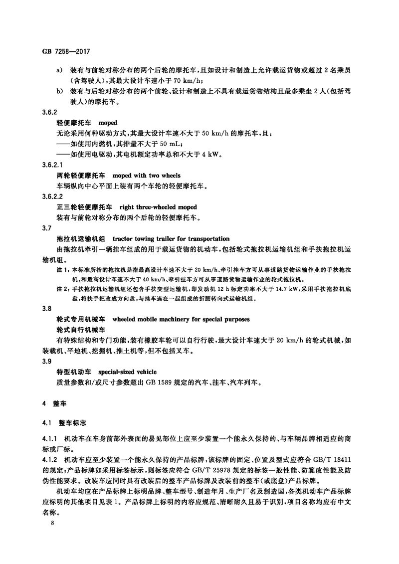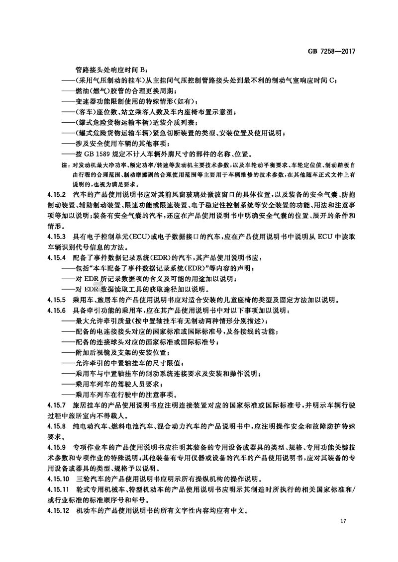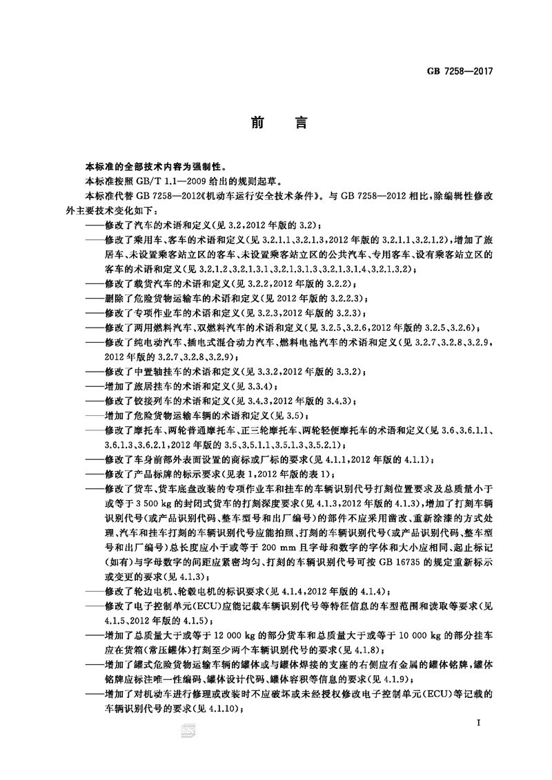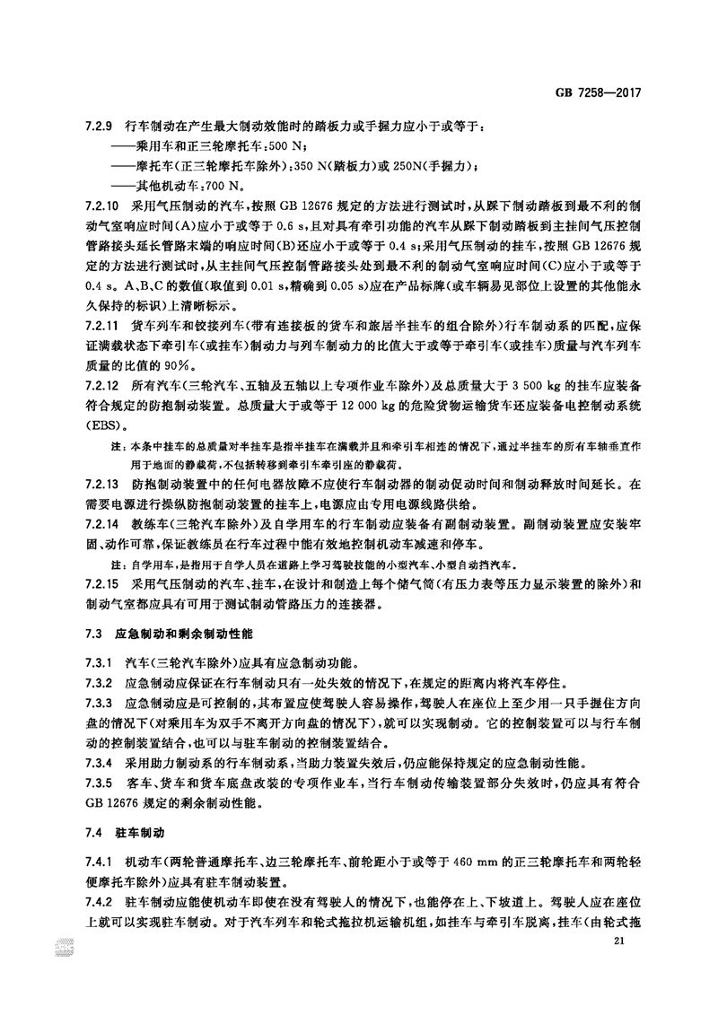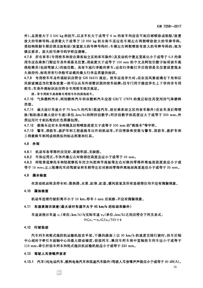 GB 7258-2017机动车运行安全技术条件